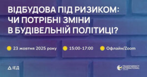 За оцінкою Світового банку, Україна потребує понад 500 млрд доларів США для відбудови та відновлення після війни. Значна частина цієї потреби пов’язана з будівництвом. Але чи готовий сектор до великої відбудови? Чи достатньо ефективне чинне законодавство і як воно працює на практиці? Що варто зрозуміти та змінити, щоб підготуватися до масштабної відбудови — і водночас покращити ситуацію вже сьогодні?